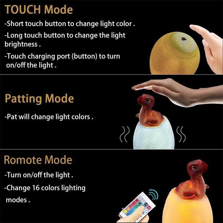 Κλεμμένο Αυγό Δράκου Σχήμα Δημιουργικό Άγγιγμα 3D Διακοσμητικό Νυχτερινό Φωτάκι, Έκδοση με Χτύπημα 3 Χρωμάτων