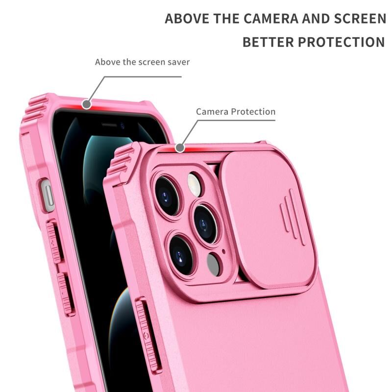 Θήκη τηλεφώνου με στερεοσκοπική βάση, συρόμενο κάλυμμα κάμερας για iPhone 13 Pro (Ροζ)