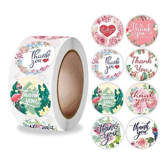 Στρογγυλό ευχαριστούμε αυτοκόλλητο Floral διακόσμηση δώρο φάκελο σφράγιση αυτοκόλλητο, μέγεθος: 2.5cm / 1 ίντσα (A-195)