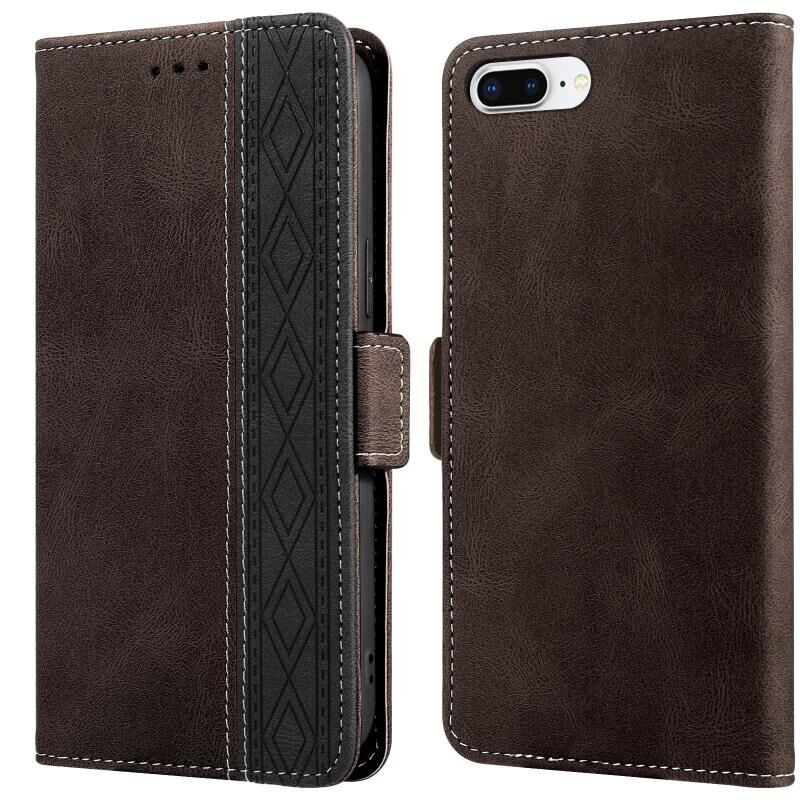 Θήκη Δερμάτινη με Μαγνητικό Κλείσιμο και Ράψιμο για iPhone 7 Plus / 8 Plus (Καφέ)