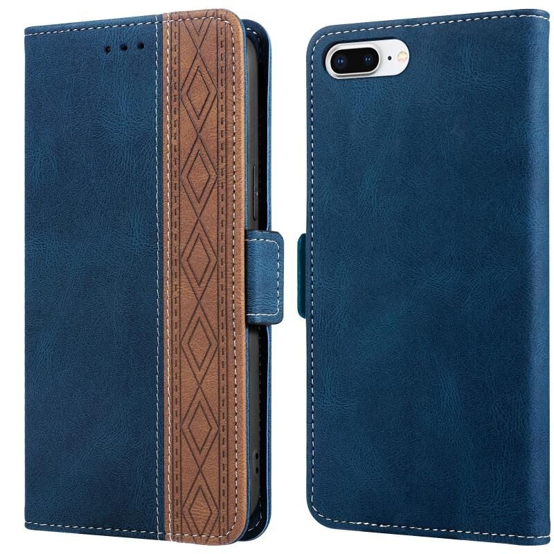 Θήκη Δερμάτινη με Μαγνητικό Κλείσιμο και Ράψιμο για iPhone 7 Plus / 8 Plus (Βασιλικό Μπλε)