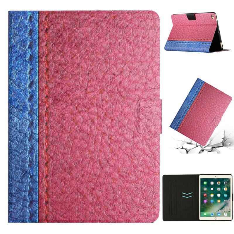 Stitching Solid Color Smart Leather Tablet Case For iPad Air / Air 2 / 9.7 2018 / 2017(Rose Red)