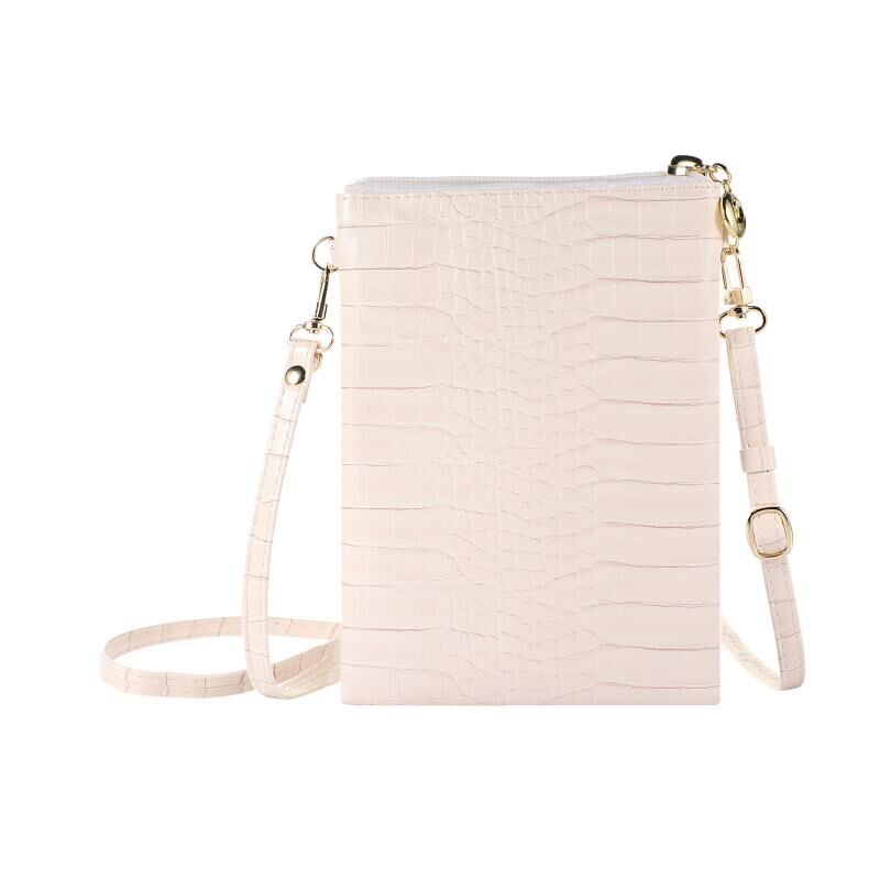 Θήκη Κάρτας Κινητού με Υφή Πέτρας και Τσάντα με Φερμουάρ με Μακρύ Λουρί (Μπεζ)