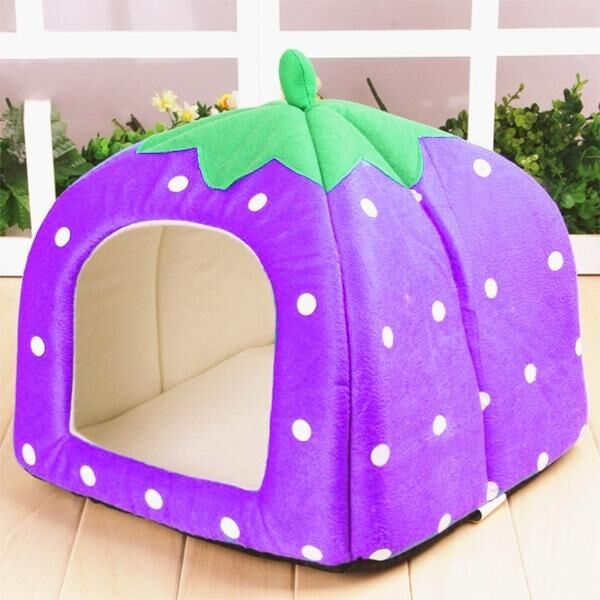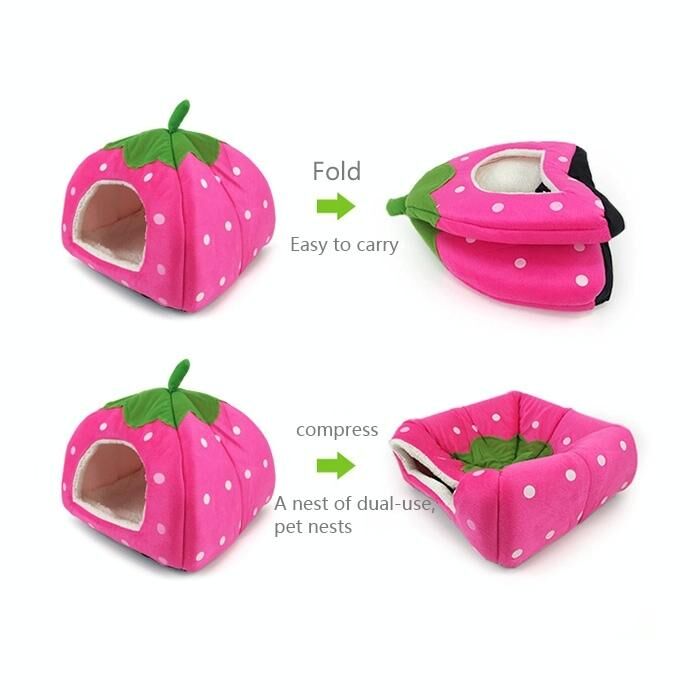 Φράουλα σε σχήμα φράουλας Αναδιπλούμενη σύντομη βελούδινη φωλιά κατοικίδιων ζώων, μέγεθος: XS