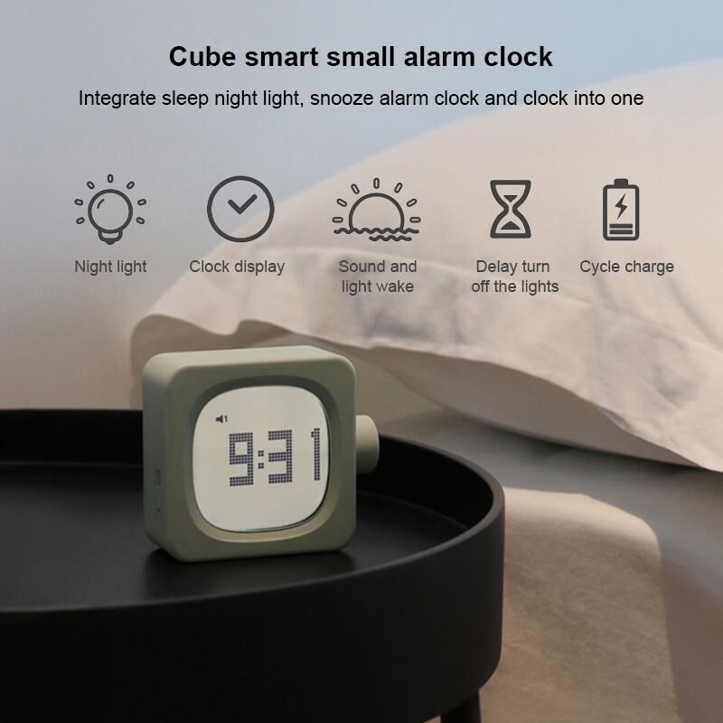 4. Block smart small alarm clock, integrated sleep night light, snooze alarm clock, multi-function clock