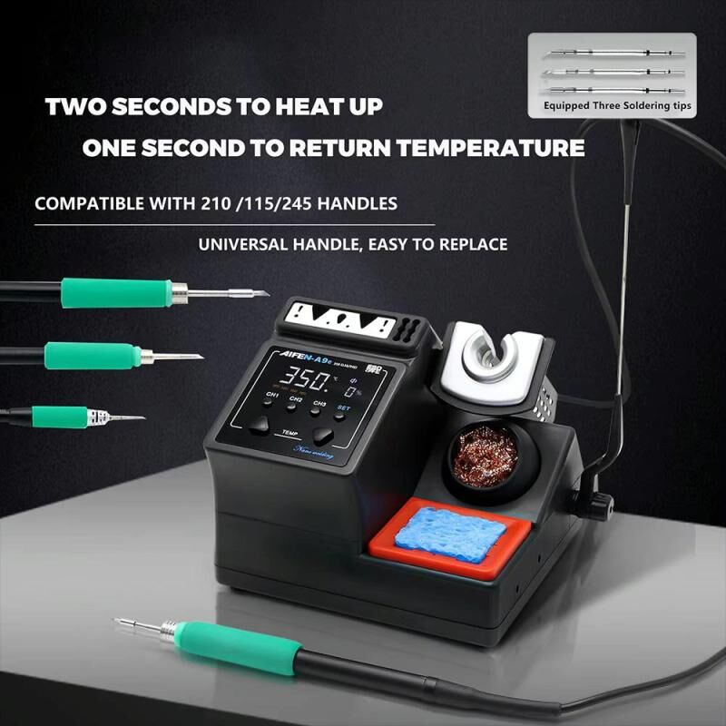 1. A9E soldering station, using the program chip to control temperature, heating quickly and accurately, 2 seconds to melt