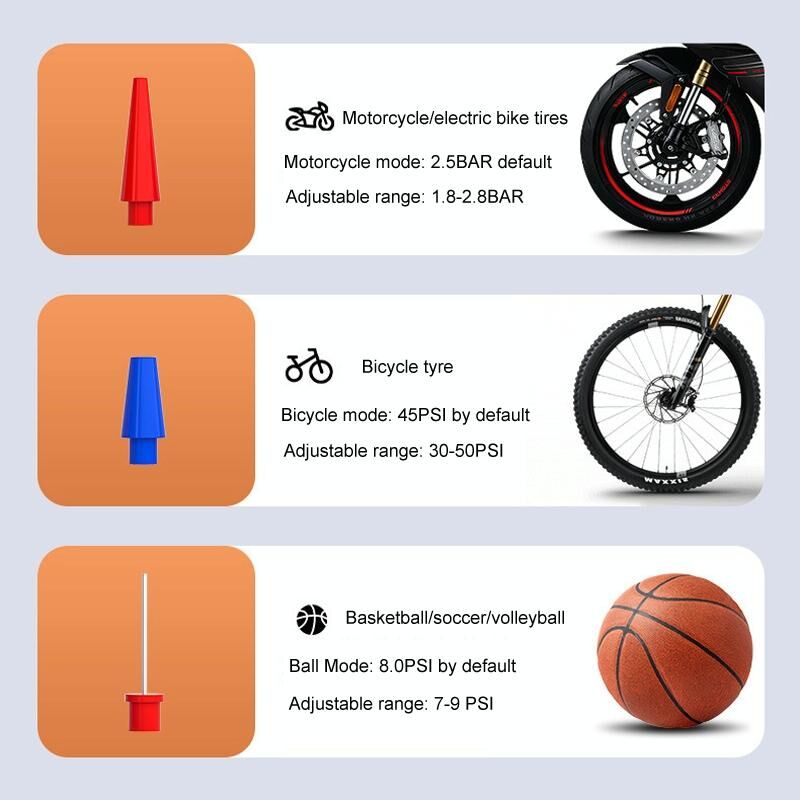 6. Suitable for 12V car tires, also suitable for motorcycles, bicycles, balls, rubber boats, beach pontoon beds, inflatable toys, etc