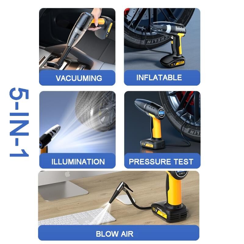 1. Five functions in one: you only need to spend one price to get a product that has vacuuming, inflation, blowing, lighting, and pressure measurement functions (any function is not inferior to similar products)