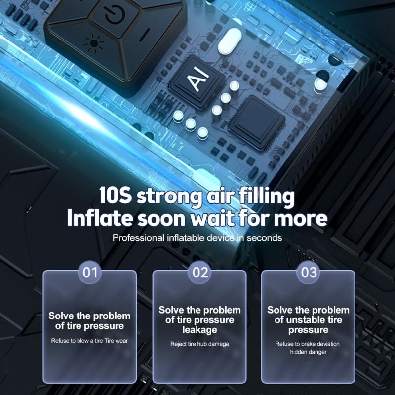 5. Tire pressure preset button, multiple modes, automatic charging and stopping