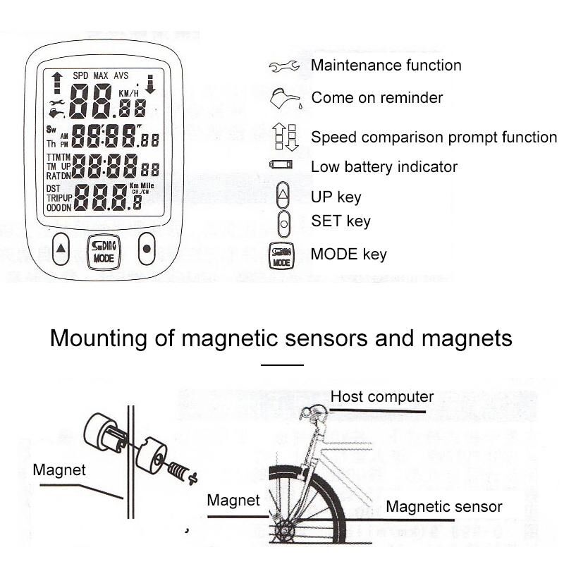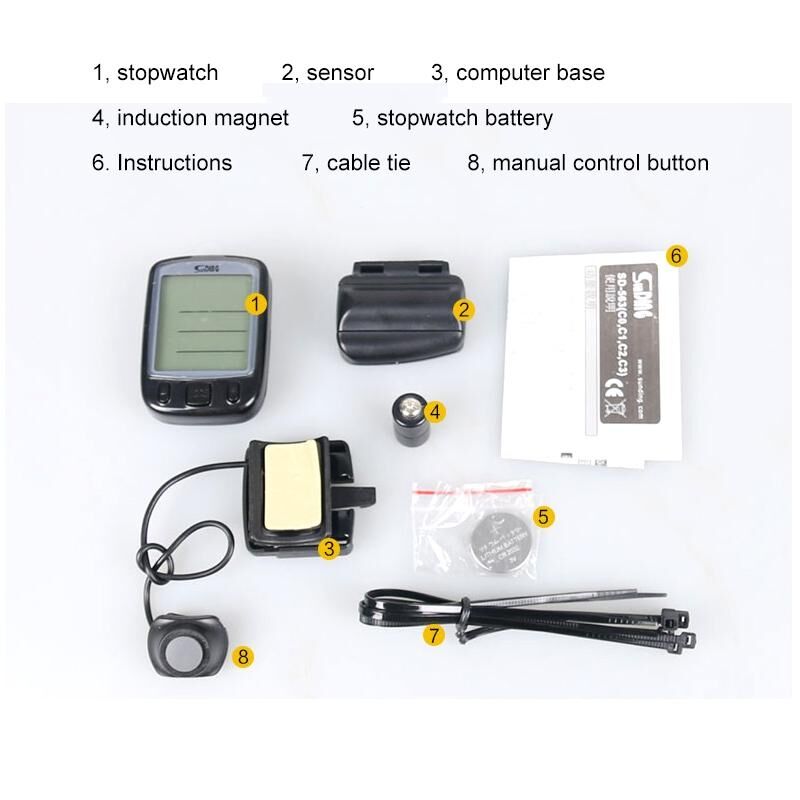 SUNDING 563C Ποδήλατο Αδιάβροχο Ασύρματο LCD Οθόνη Φωτεινό Χιλιομετρητής Ταχύμετρο, Αγγλική Έκδοση (Μαύρο)