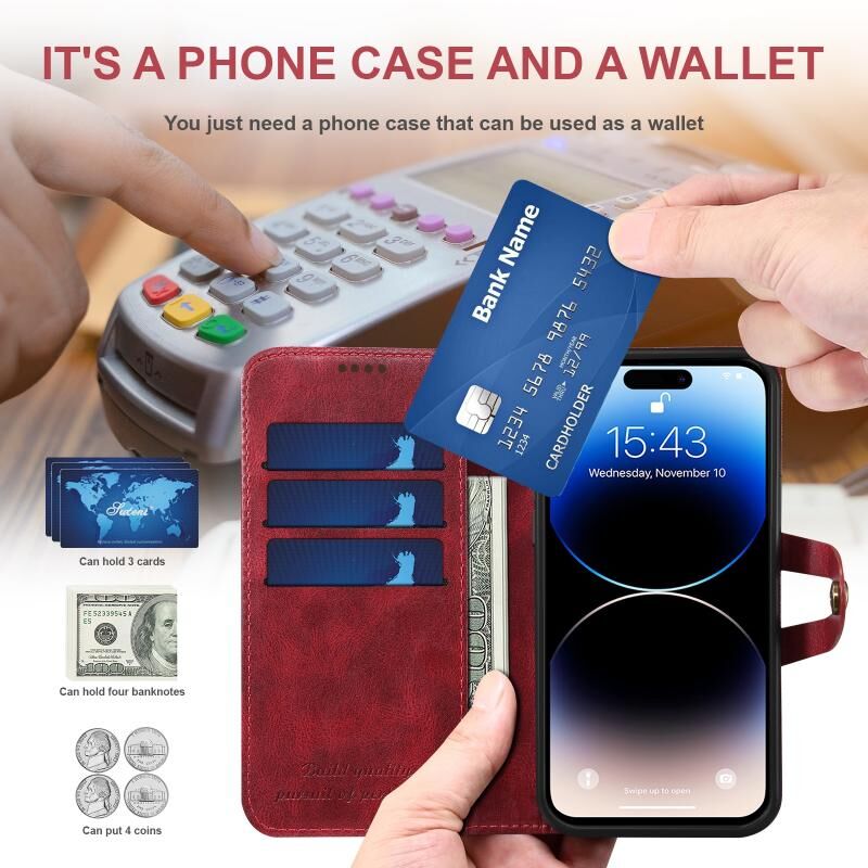Θήκη τηλεφώνου Suteni από δέρμα με υφή μοσχαριού και αγκράφα για iPhone 14 Pro Max (Μαύρο) (Suteni)