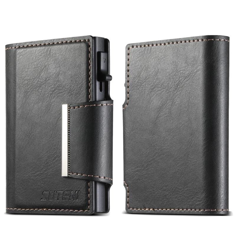Suteni oil wax-patterned left and right buckle buttons automatically pop out the card box(Black) (Suteni)