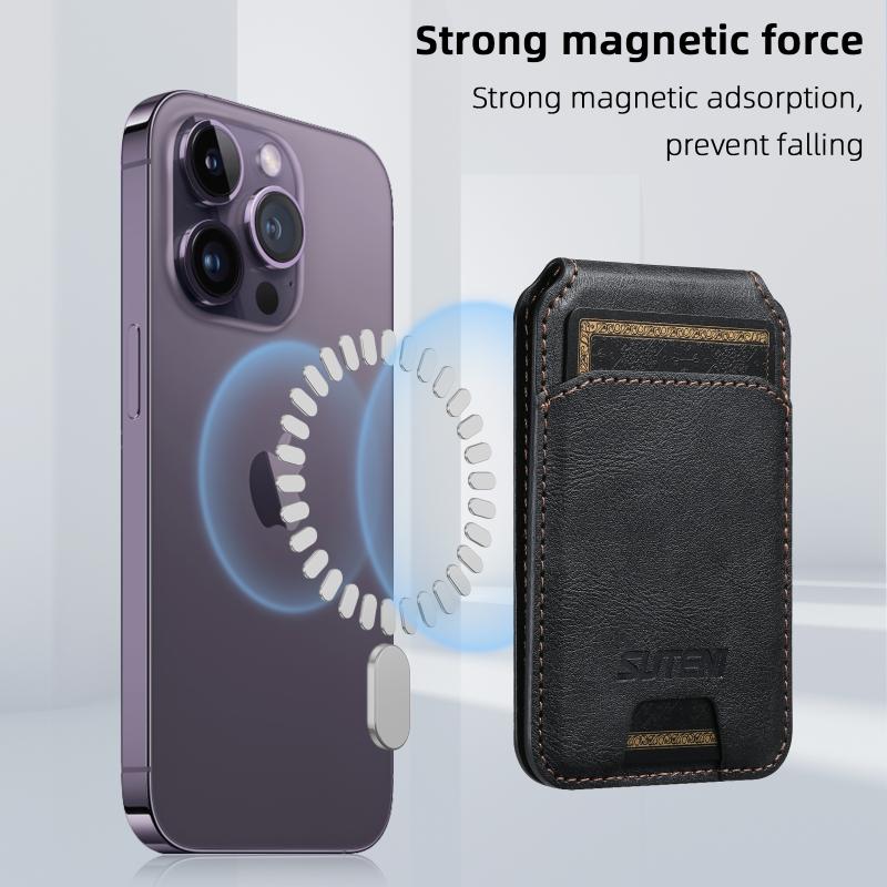 Suteni S2 Phone Magnetic Card Case Card Sleeve MagSafe Magnetic Coil PU Leather(Black) (Suteni)