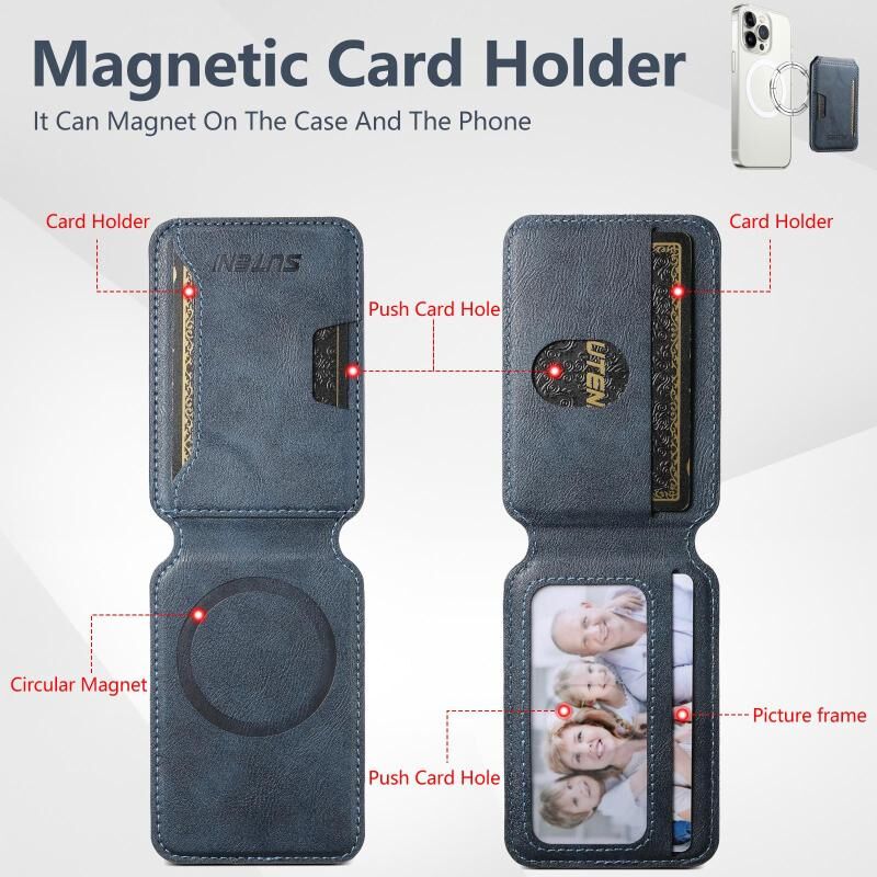 4. Dual brackets enable multiple usage scenarios, with robust magnetic protection ensuring secure attachment. Despite its compact size, the card holder is fully functional.