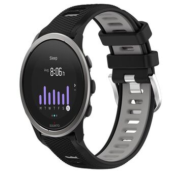 Για SUUNTO 5 Peak 22mm Αθλητισμός δύο χρωμάτων χάλυβα πόρπη σιλικόνης ρολόι μπάντα (μαύρο + γκρι)