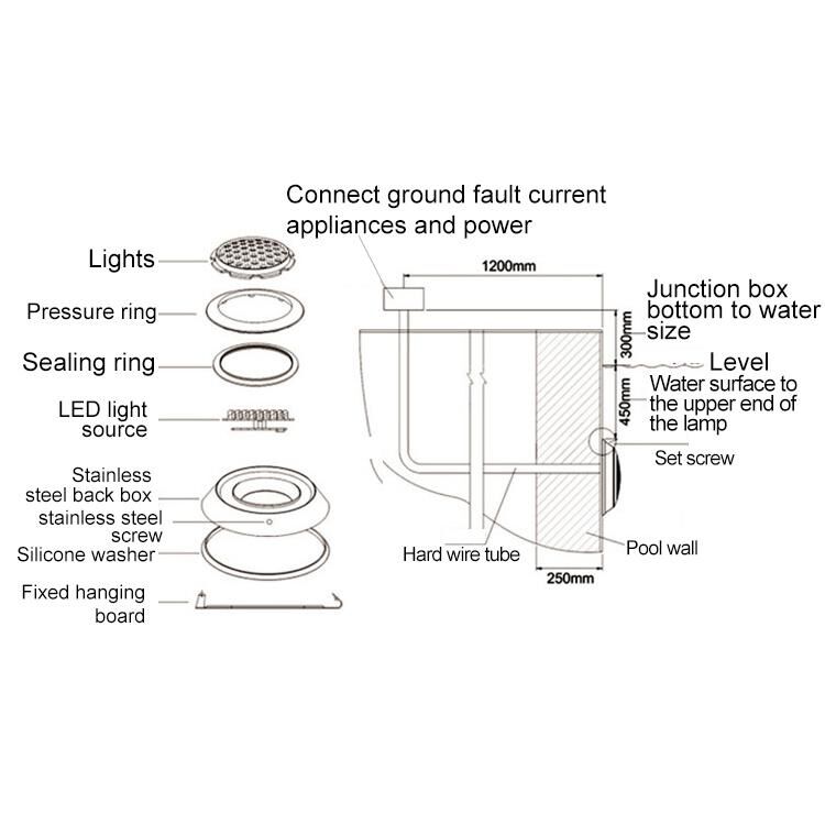 Φωτιστικό Τοίχου ABS για Πισίνα, Υποβρύχιος Φωτισμός LED, Ισχύς: 24W (Έγχρωμο + Τηλεχειριστήριο)