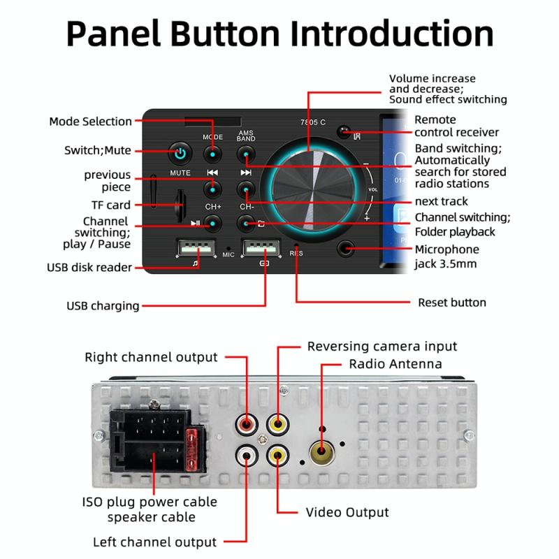 4. RCA terminal introduction: 2-way audio output, 1-way reverse input, 1-way video output