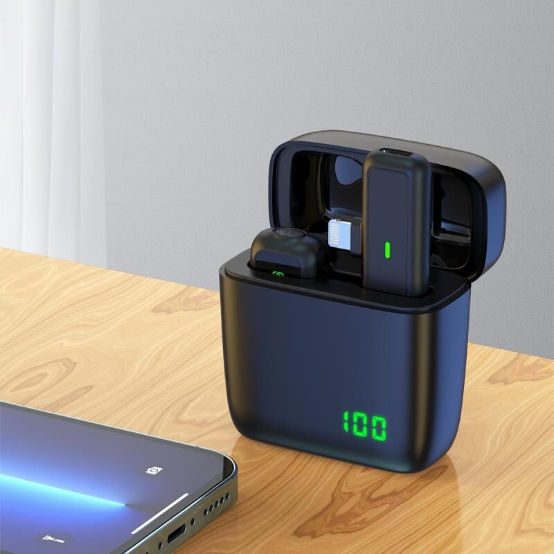 SX5 1 TX + 1 RX Lavalier Wireless Microphone with Digital Display Charging Box, Specification:8 Pin(Black)