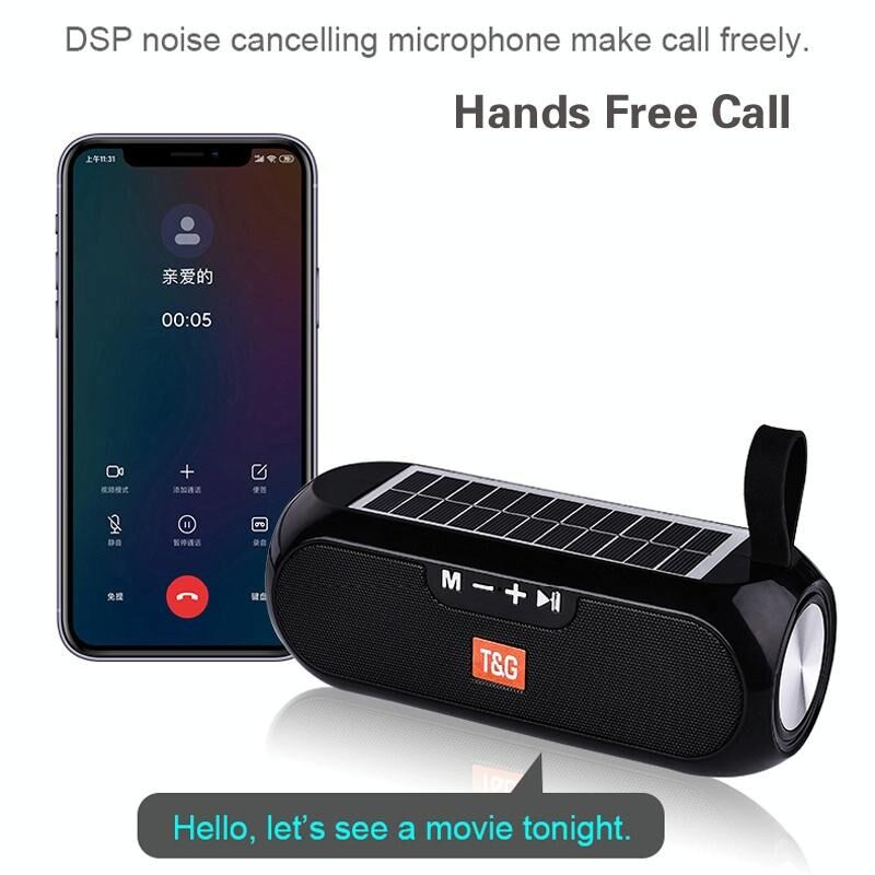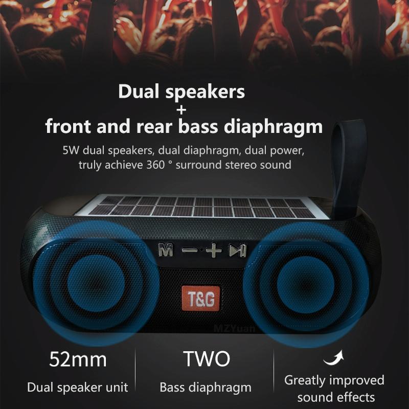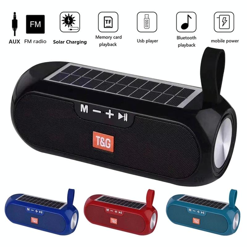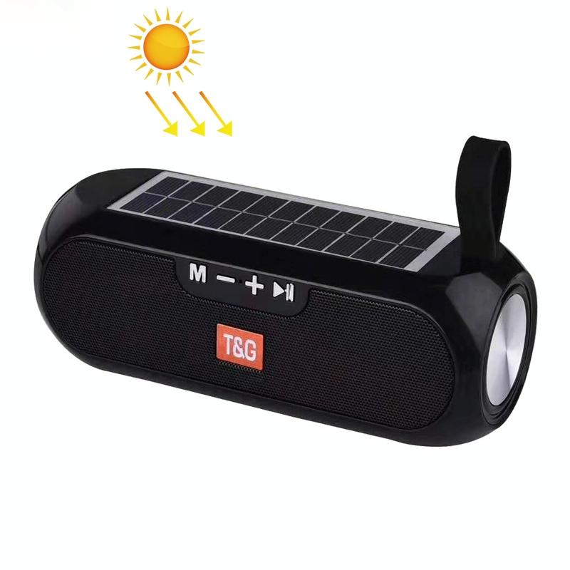 T&G TG182 Portable Column Wireless Stereo Music Box Solar Power waterproof USB AUX FM radio super bass(Black) (T&G)