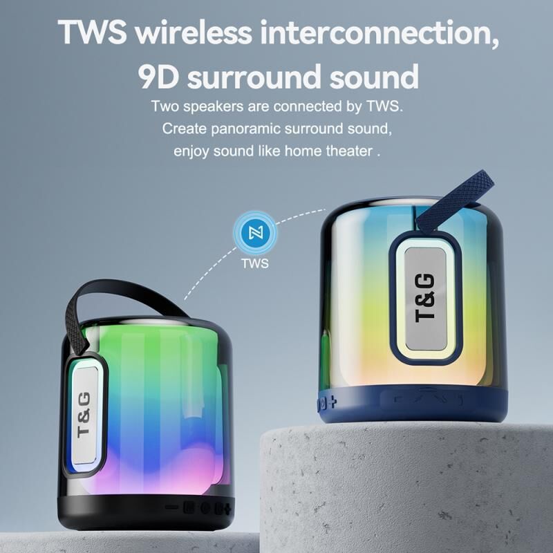 T&G TG376 360 Degree Full Screen LED Light RGB Multicolor Wireless Bluetooth Speaker Subwoofer(Grey) (T&G)