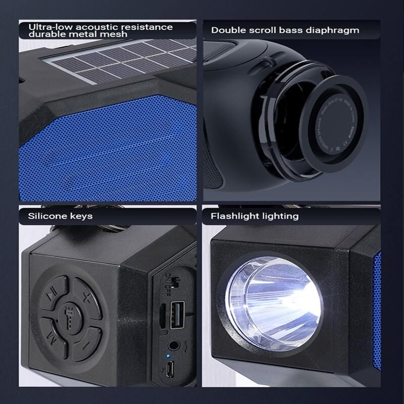 T&G TG634 Outdoor Solar Power Bluetooth Wireless Speaker with FM / Flashlight / TF Card Slot (Black Grey) (T&G)