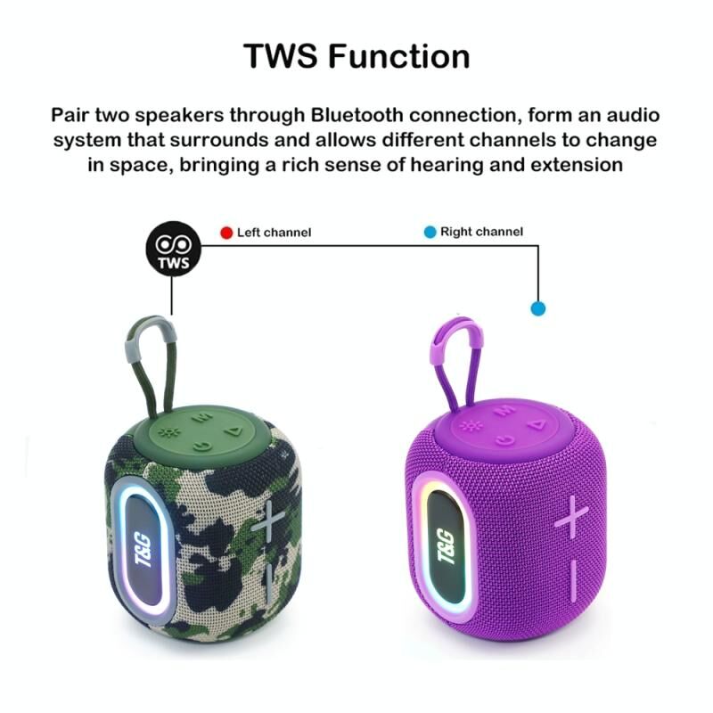 2. TWS dual speakers can be connected in series. Using Bluetooth, two speakers can be connected in series to produce super bass and an immersive effect.