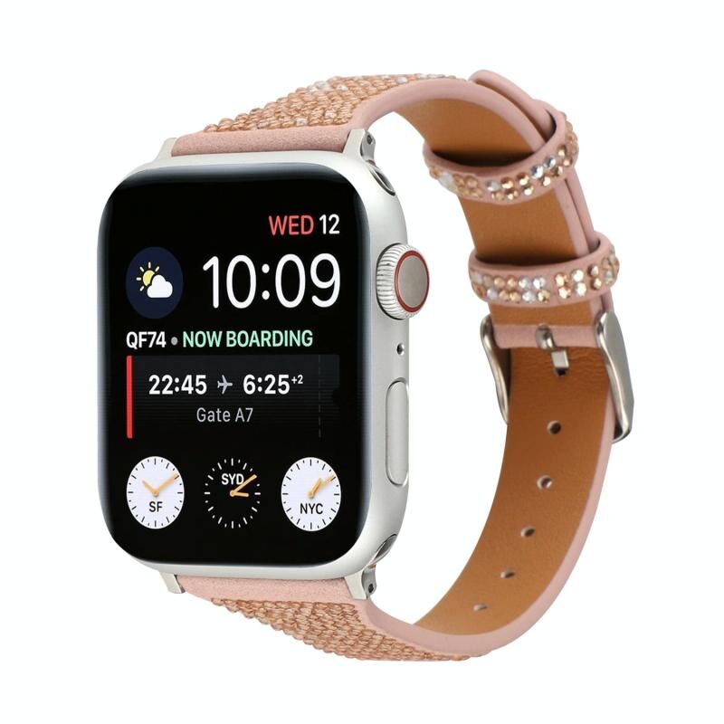 Λουράκι ρολογιού σε σχήμα Τ με μικρή μέση, αστραφτερό διαμάντι, από γνήσιο δέρμα για Apple Watch Series 9&8&7 41mm / SE 3&SE 2&6&SE&5&4 40mm / 3&2&1 38mm (Ροζ χρυσός)