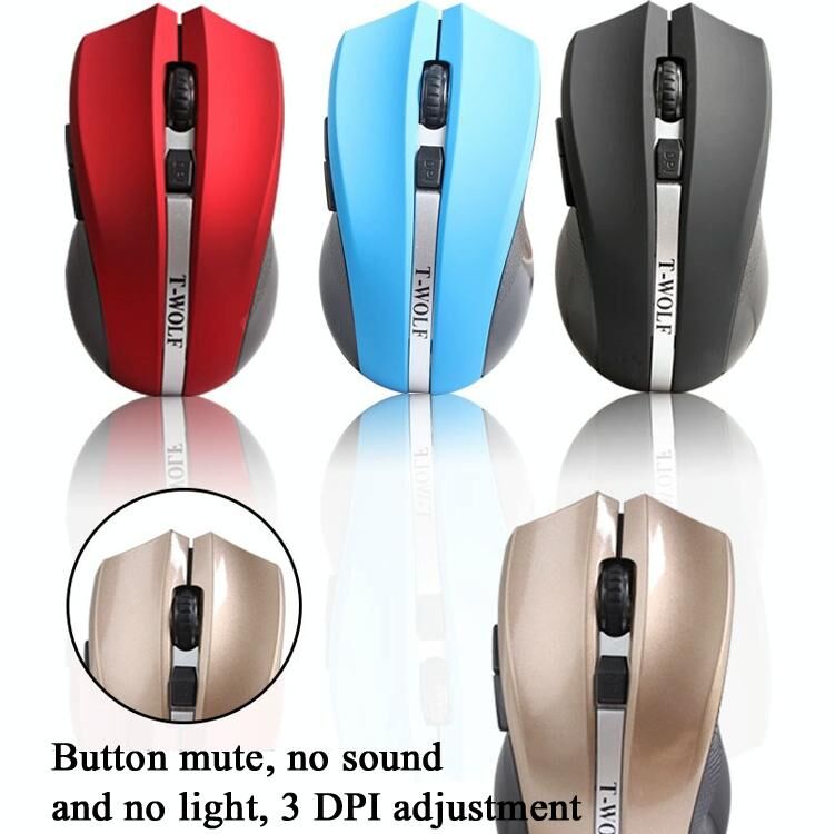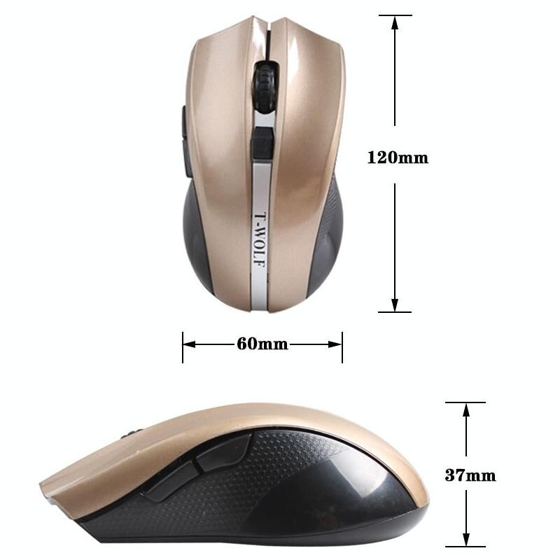 T-WOLF Q5 Ασύρματο Ποντίκι 2.4GHz με 5 Κουμπιά, 2000 DPI, Αθόρυβο και χωρίς Φωτισμό, για Gaming, Γραφείο, Υπολογιστή, PC, Laptop (Χρυσό) (T-WOLF)