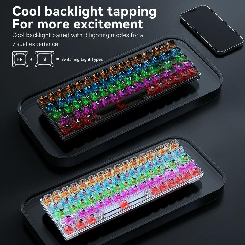1. Διάταξη 68 πλήκτρων και εξαιρετικός σχεδιασμός απελευθερώνουν χώρο στην επιφάνεια εργασίας, προσφέροντας παράλληλα μια καλύτερη εμπειρία λειτουργίας.