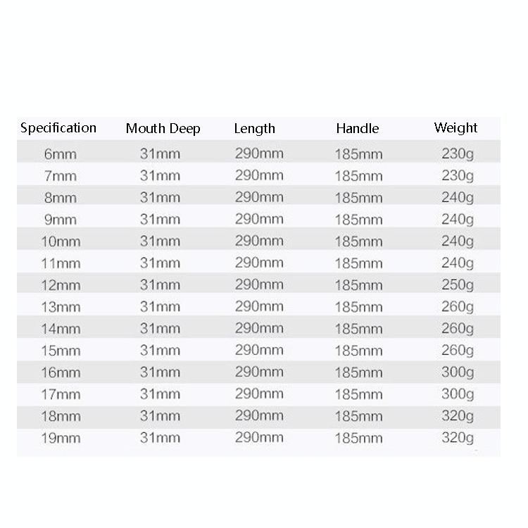 5. Specifications: 6/7/8/9/10/11/12/13/14/15/16/17/18/19mm