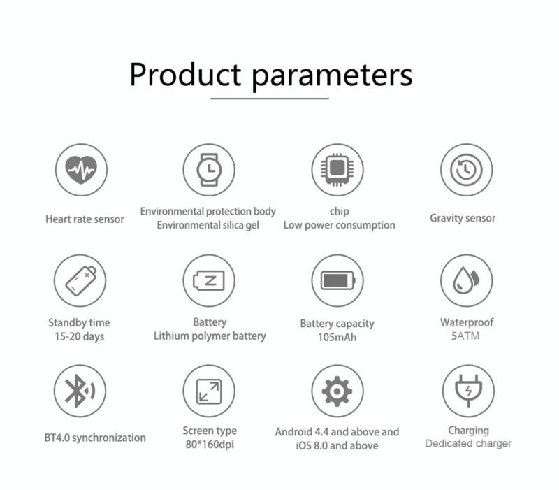 - Λειτουργία:Μετρητής βημάτων, Παρακολούθηση ύπνου, Δευτερόλεπτα, Αποθεματικό ενέργειας, Ειδοποίηση μηνυμάτων, Παρακολούθηση καρδιακού ρυθμού, Χρονογράφος, Τηλεχειριστήριο, 24ωρη καθοδήγηση, Παρακολούθηση φυσικής κατάστασης, Υπενθύμιση μηνυμάτων, Υπενθύμιση κλήσεων
