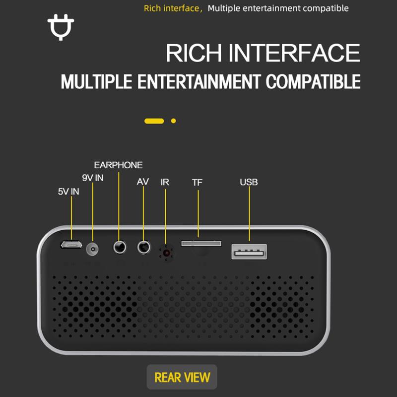 12. Input interface: AV / USB / TF / line mirroring / 5V 2A