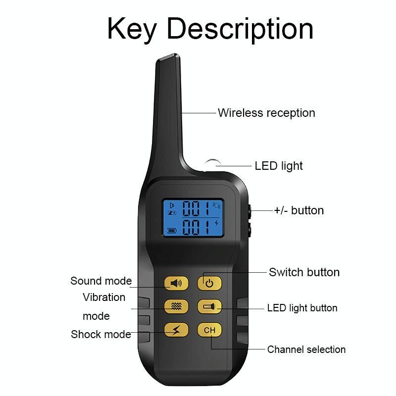 3. The product has electric shock, buzzer, vibration, flashlight, automatic barking control mode