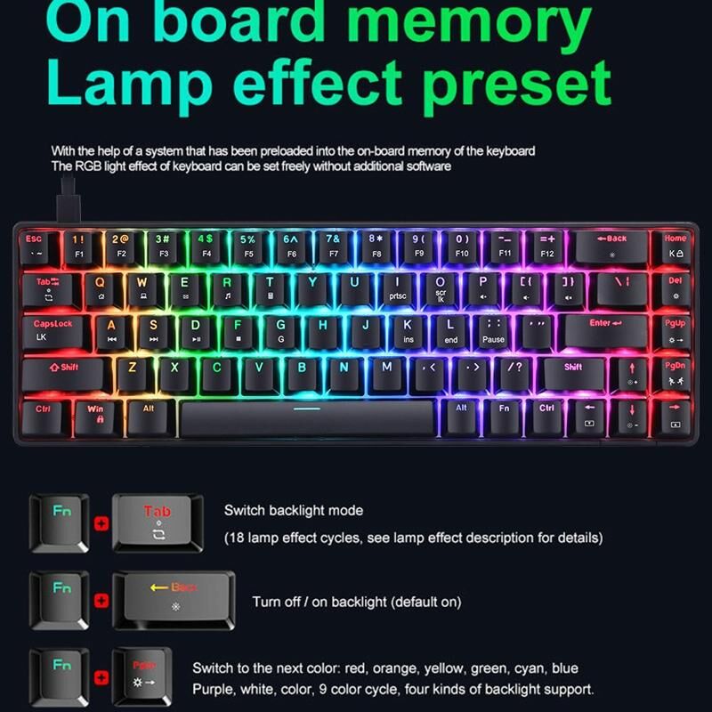 1. 18 είδη εφέ οπίσθιου φωτισμού + 9 είδη μονοχρωματικών εφέ φωτισμού, πλήκτρο συνδυασμού FN για γρήγορη εναλλαγή, υποστήριξη ρύθμισης πέντε επιπέδων