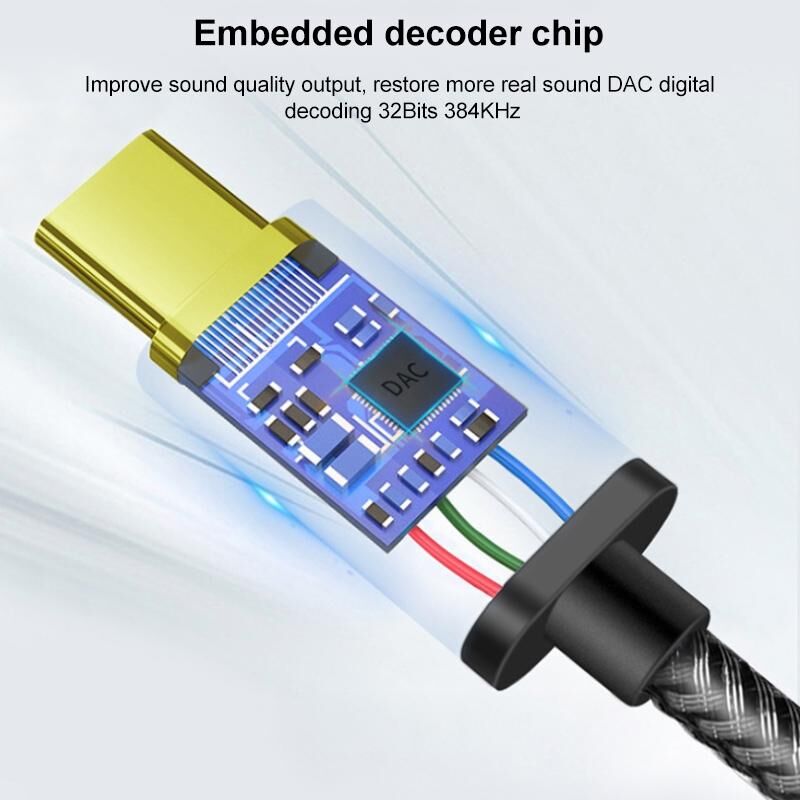 TA12-R2 USB-C / Τύπος-C αρσενικό σε 3,5 χιλιοστών ήχου θηλυκό μονό κρυστάλλινο χαλκό πλεξούδα προσαρμογέα ακουστικών (ασημί)