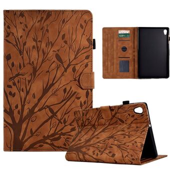 For Samsung Galaxy Tab A8 10.5 2021 Fortune Tree Pressure Flower PU Tablet Case with Wake-up / Sleep Function(Brown)