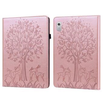 Για Lenovo Tab M9 δέντρο & ελάφια μοτίβο ανάγλυφο δέρμα Tablet υπόθεση (ροζ)