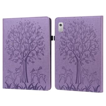 Για Lenovo Tab M9 Tree & Deer Pattern ανάγλυφη δερμάτινη θήκη tablet (μωβ)