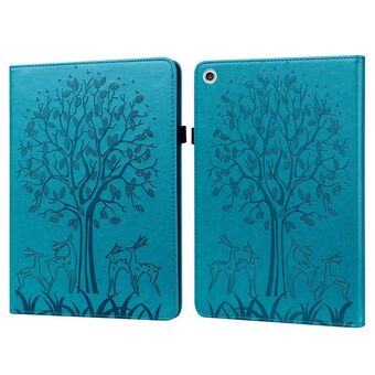 Για Lenovo M10 Plus 3rd Gen 10.6 ιντσών δέντρο & ελάφι ανάγλυφη δερμάτινη θήκη tablet (μπλε)