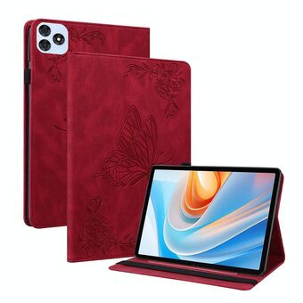 For itel VistaTab 30 Butterfly Flower Embossed Leather Tablet Case(Red)