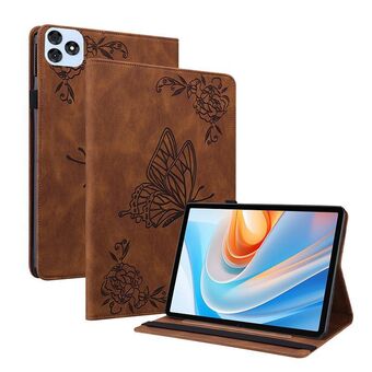 For itel VistaTab 30 Butterfly Flower Embossed Leather Tablet Case(Brown)
