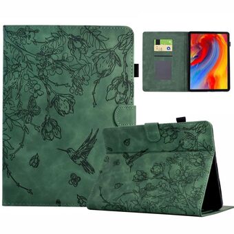 For Samsung Galaxy Tab S6 Lite P610 Flowers and Bird Embossed Smart Leather Tablet Case(Brown)