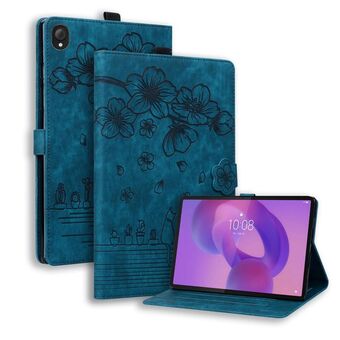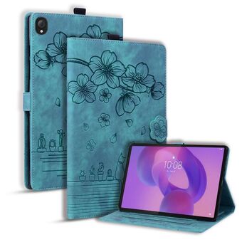 For Lenovo Tab K10C / E10C Cartoon Sakura Cat Embossed Leather Tablet Case(Blue)