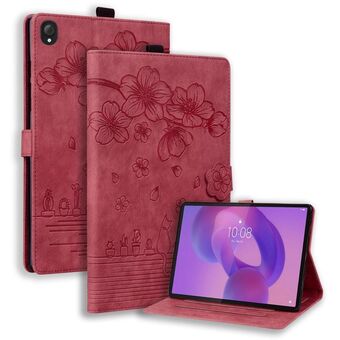For Lenovo Tab K10C / E10C Cartoon Sakura Cat Embossed Leather Tablet Case(Red)