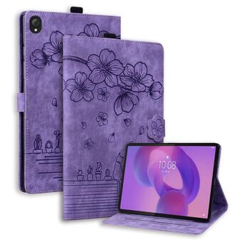 For Lenovo Tab K10C / E10C Cartoon Sakura Cat Embossed Leather Tablet Case(Purple)
