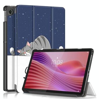 For Lenovo Tab M11/ Xiaoxin Pad 11 2024 Custer Coloured Drawing 3-folding Leather Smart Tablet Case(Lazy Cat)