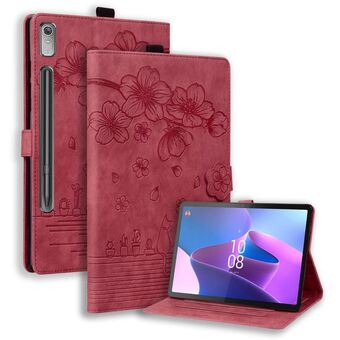 For Lenovo Tab M10 3rd Gen Cartoon Sakura Cat Embossed Leather Tablet Case(Red)