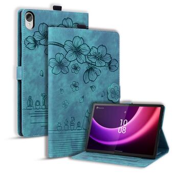 For Lenovo Tab P11 TB-J606F Cartoon Sakura Cat Embossed Leather Tablet Case(Blue)
