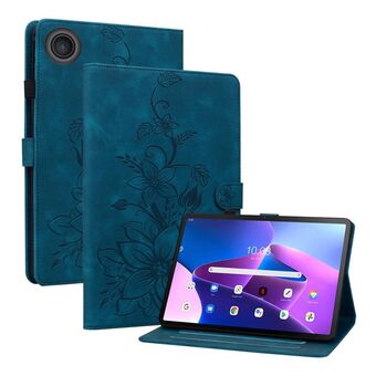 For Lenovo ZhaoYang K10C 10.1 inch Lily Embossed Leather Tablet Case(Dark Blue)