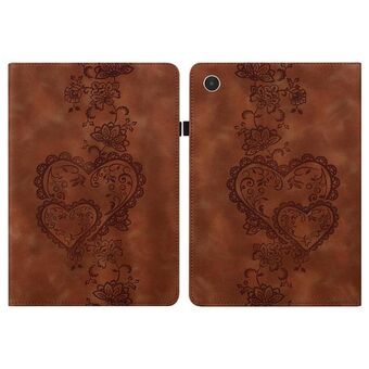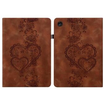 For Lenovo Tab M8 4th Gen Love Hearts Embossed Leather Tablet Case(Brown)